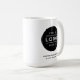 Custom two-sided branded coffee mug features your professional business logo design, along with wording for your business name, slogan, website, location, or other information that can be personalised. Simply add your company logo to the black round placeholder image space, and fill in with your preferred wording.