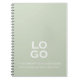 This professional custom notebook features a sophisticated and modern design on a soft sage green coloured background. A sample company or business logo is placed near the bottom which you can personalise to include your own custom logo or other image. A sample business or company name, followed by a client or employee title are printed below the logo.
