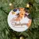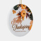 This beautiful corporate Thanksgiving ornament features a pretty autumn leaf border of brown and orange leaves with orange pumpkins around your personalised company text. Customise these chic business holiday ornaments for your professional group with in lovely fall colours.