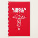 Custom caduceus symbol logo spiral planner for nurses. Nurses Rock! Personalised weekly / monthly agenda book. Make your own cover design with red background colour. Cute gift idea for nursing school student, graduate, caregiver, RN nurse, hospital worker, medic, doctor, friend, colleague, co worker, boss, employee etc. Small school supplies and office presents for him or her.