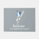 This unique custom doormat is featuring a California Scrub Jay on a grey background. The font, font sizes and colors can be changed by clicking on "customize further". The California scrub jay (Aphelocoma californica) is native to parks, neighborhoods, and riverside woods near the Pacific Coast of North America.