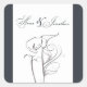 Line drawing of two calla lilies with swirls in a dark charcoal grey with a white background and dark navy blue accents. Easily remove names and add your own to this design. Perfect for showers, receptions, gift bags and more.