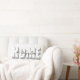 Customisable personalizable with family name for example in elegant black calligraphy handwritten script. Minimalist minimal trendy modern throw pillow. Bold HOME typography with grey shadow, easy to match in any ambient. For your home decor or as a creative gift for newlyweds or as housewarming gift, or new homeowners present. Neutral colours, grey and off white the natural colour from Zazzle pillows. The shadowed text has a cool relief effect.