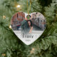 Commemorate your honeymoon or a special vacation with this elegant ornament featuring a photo on each side. Personalise with your custom caption using two lines of custom text on each side, in black lettering on a sheer white overlay.
