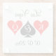 Glass with personalised name monogram letters of bride and groom or newlyweds couple. Playing card suits design with queen and king of hearts plus spade.