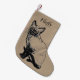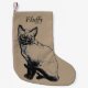 Beautiful arty cat Christmas stocking - customise it! stocking has red back side and red ribbon to hang. Black drawing of a Siamese cat on the front with room to add your cat's name.