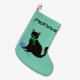 Graphic illustration of black cat with yarn. Brighten up the holiday season with this cat lovers design. You can customise background with your favourite colour and add name or message.