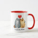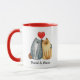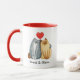 Custom Cats Couple Names Red Personalised Coffee Mug. Cute cats couple illustration mug. Personalise with the two names of your choice! With a double sided wrapped around design with red heart, this coffee/tea mug would make an ideal wedding gift, anniversary gift or Valentines day gift!
