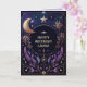 Dive into the mystical with the Celestial Magic Birthday Card, exclusively from CelestialDreamer. Adorned with a luminous crescent moon, twinkling stars, and mystical planets, this card features a vibrant celestial display against a dark, starry backdrop. Elegant gold accents enhance the purple and silver hues, crafting a scene of cosmic wonder perfect for any birthday.