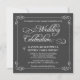 Rustic Typographic Chalkboard Wedding Invitations -- Swirly, curly scrolls and fancy rustic frame on slate grey blackboard. Add the names and wedding info in this easy to use template. Vintage style chalk calligraphy and whimsical script typography - change the font styles to reflect your formal or semi-formal retro wedding theme. Square chalk board invitation style is perfect for trendy modern weddings with a fun touch of sophisticated charm for the traditional bride and groom. Affordable prices for brides on a budget. NOTE: This product design is set-up for square cards only, which requires extra postage.