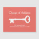 Custom change of address magnetic moving cards for new home. Thin magnet postcard for hanging on the fridge. Elegant vintage old antique key silhouette design with heart. Coral pink or custom colour background. Let friends and family know you have moved or relocated to another place, country or city. Also nice for moving business or company. Add your own name and text.