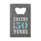 Create cool custom birthday party favours with these "cheers" themed bottle openers. Milestone birthday design features "cheers and beers to xx years" in white and turquoise lettering on a grey chalkboard background. Add the guest of honour's age; example shown for a 50th birthday. Then, personalise the reverse side with the occasion and party date or your custom message.
