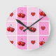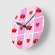 Custom Cherry Heart Chequerboard Pattern Round Clock