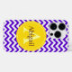 Modern monogram chevron stripes case features lavender and white chevron stripes and a yellow accent frame for your name, initial, or other text. Show your personality with this trendy and unique iPhone cover. Makes a great gift for all occasions. Click the "Customise it!" button to change the stripes' colour, text size, text colour, and font style!
