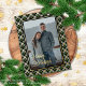Contemporary classic Christmas holiday season green, white, black and gold foil coloured Buffalo lumberjack plaid tartan pattern. With option to customise or personalise with a photo and (limited) text of your choice. With room to customise or personalise the text on the front, and family name (or individual names) and a customisable season greeting message on the backside of the card.