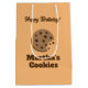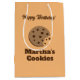 Custom chocolate chip cookie gift bag for Birthday and other occasions. Fun personalised design for kids and adults. Also great for party favours, sweets, candy, pastry food etc. Cookie with bite taken out.