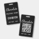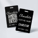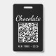 Custom Chocolate Festival QR Code Exibitor ID Badge with clean black and white design. Ideal for vendors and exhibitors who need clear identification at chocolate events, food festivals, and trade shows. Professional, modern, and easy to personalize.