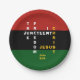 Stylish JUNETEENTH paper plates with Christian Bible reference, showing the inspirational quote TRUE FREEDOM IN CHRIST JESUS in a crossword format including JUNETEENTH, and is set against red, black and green panels (colours of the PAN AFRICAN FLAG). The main text is based on the Scripture reference from John 8:36 - HE WHO THE SON (JESUS) SETS FREE IS FREE INDEED. The Bible reference JOHN 8:36 is customisable, so you can replace the text with your MONOGRAM. This would make an ideal addition to your party supplies for Juneteenth, Black History Month, Christmas, Birthdays and throughout the year. Be prepared to share your faith, as this would also make a great conversation starter.