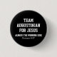 Simple but stylish Team Jesus Christian Button with the words TEAM (NAME) FOR JESUS - ALWAYS THE WINNING SIDE. Underneath the Bible reference is Romans 8:37, which states: 'We are more than conquerors through Him who loved us.' The placeholder name is CUSTOMIZABLE so you can personalise with your name or your family name. A great addition to your sportswear collection, and for your family, business or team branding. Ideal for church/Christian events. Also comes in white. Matching gifts available.