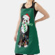 Festive Personalized Christmas Holiday Bernese Mountain Dog dressed in santa hat and green and white scarf decorated with christmas lights. Cute christmas apron for berner lovers!