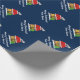 Custom Christmas gift wrap with cute cabin house. Personalised Wrapping Paper in any colour. Add your own greeting and name. Suitable for kids and adults. Fun winter design with red roof, chimney smoke, snow and Christmas tree in the yard.