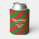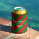 Custom Christmas Holiday can coolers with stripes. Personalised beverage cooler for party guests. Green and red striped design with custom quote, wishes, greeting, name or initial letters on front and back. Double sided xmas print personalised with name or monogram. Elegant script typography. Give away as party favour gift to friends, family, coworkers and more. Also for bottles. Cute accessories for home or office. Change quantity to get the cheap bulk price.