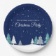 Custom Christmas Party Winter Trees Blue Paper Plate