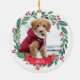Decorate your tree or give a special gift this holiday season with this elegant Merry Christmas poodle in a wreath design christmas ornament, and matching decor. This poodle christmas ornament features a watercolor dog in a green and red wreath with holly and berries on one side and your photo on the other. Personalize with photo, name front, year back. This poodle christmas ornament will be a favorite among poodle lovers, dog lovers, and animal lovers. Visit our collection for matching poodle christmas cards, home decor, and gifts. COPYRIGHT © 2020 Judy Burrows, Black Dog Art - All Rights Reserved. Custom Christmas Pet Dog Photo Apricot Poodle Ceramic Ornament