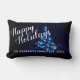 Christmas pillow with blue tree design ready to personalise with your family name.