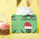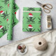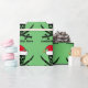 Cool Christmas wrapping paper featuring a green holiday pattern of a skull wearing a red Santa Claus hat. I like this cute Xmas skeleton gift wrap.