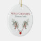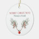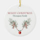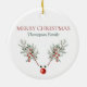 Custom Christmas Red Nosed Reindeer Pine Berries Ceramic Ornament