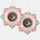 Custom Christmas Star Winter Red Merry Green Bright Orange Pastel Pink Hanging Ornament Photo Greeting Decorations. Decorate your home for Christmas with this festive red, pink, orange, green, and turquoise geometric art Christmas Star tree bauble. Give your home interior a maximalist, cheerful, warm colour glow. Modern dopamine decor for cosy nights in and jolly Christmas parties. For people who love eclectic, colourful Christmas maximalism. Personalise this decor by adding your own message or greeting and picture.