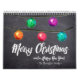 Watercolor Christmas ball ornaments and a beautiful script type adorn this design against a chalkboard background. Personalise with you family name and customise every month with your own photographs of choice.