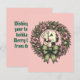 This beautifully designed card features an adorable dog, adorned with a festive wreath and set against a backdrop of soft pastel colours. Customise the words and font to express what you want to tell your loved ones this holiday season. Let Zazzle print it for you, or download and print it yourself.
