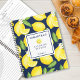 This lemon pattern design and a white square on the front where you can customise it with your name, the purpose, and the volume if you would like that.