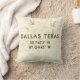 Shown for Dallas Texas, this cool modern throw pillow features a Dallas city map in neutral beige and ivory tones with latitude and longitude in coordinating typography.