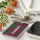 Stylish key chain done in the green and mauve Crawford clan Scottish tartan plaid pattern. Bold white old world style text, on the front and back, is ready to personalise for yourself or as a great gift idea.
