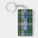 Stylish key chain done in the classic green, white, and blue MacNeil clan Scottish tartan plaid pattern. Bold white old world style text, on the front and back, is ready to personalise for yourself or as a great gift idea.