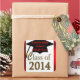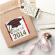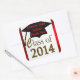 Easily add "Any School Name Or Graduate's Name Thank You!" or your custom text, to these graduation stickers, favours, tags, or envelope seals. Great Class of 2014 graduation stickers in cool gold text graphic and a black graduation cap with gold tassel all on a white announcement. An elegant red border is on this graduation sticker. Nice for kids, teens, and men and women graduates of all ages!