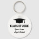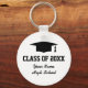 Custom class of graduation party favour keychains for graduate students. Cute gift idea for high school grads with personalised school name and class of year 2019 2020 2021 etc. Graduation hat / cap design with cool typography. Also cute for reunion parties.