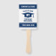 Custom gold class of high school graduation party photo hand fans. Modern design with bold typography template and tassel hat logo. Add your own graduate year, name, monogram. Fun for students, friends and family. Upload your own picture image on the back. Rectangular shape.