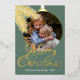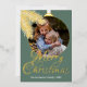 Contemporary classic Christmas holiday season greeting card with white coloured pine tree needles wreath leaves pattern on a classy green grey background, with real gold foil Merry Christmas wish text. With option and room to customise the text, family name and year date, and add a personal photo of your choice on the front, and a customisable season greeting message on the backside of the card.