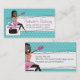 African American woman wearing and apron and oven mitt, sitting on her oven, happy to be cooking or baking. Cute business card for pastry chef, bakery, homestyle catering or other food or culinary service.