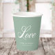 Paper cups with the word "love" in stylish cursive type and an editable background colour (click customise, go to the "Auto Warping, Wrap" layer and change the background colour). Perfect for wedding showers, engagements and wedding anniversaries.