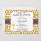 A sweet cartoon baby giraffe set against a modern giraffe print background. This baby shower invitation sets the tone for a fun, and possibly wild, baby shower.