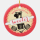 Baking makes life sweeter with kitchen utensils, rolling pin text box and lace style background on this Christmas ornament for your favourite baker or pastry chef.