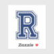 Letter R sticker. Sports college font, any custom colour. You can change the colour of the letter with the customisation tool. The complete alphabet and numbers 0-9 are available.