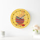 Change the background colour of this kitchen clock, featuring a Mexican or Aztec decorated red food bowl with spoon, aromas, and 'I love home cooking' in Spanish.