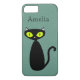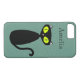Mod kitty with green eyes and a teal background. If you have a different case, you may have to customise, so the camera doesn't cover your name. You can change the background colour. Personalise it or remove the name!