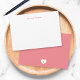 This monogram modern note card has a modern script for your name/business name on the front and features a heart at the back with an editable background colour (click customise and change its colour).